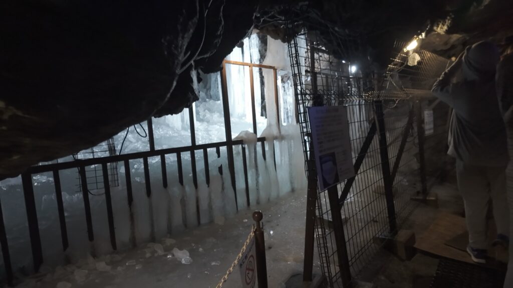 洞窟に入る前の階段からすでに冷気が漂ってきて、「えっ、もう寒い!」ってびっくり。