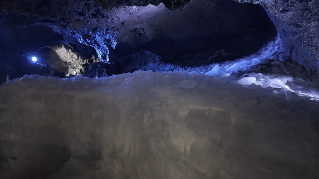 夏でも洞窟の奥は氷が溶けずに残っていて、探検気分を味わえるんです。
