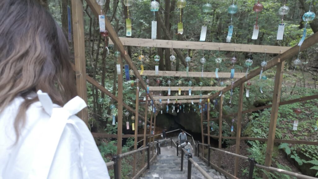 入り口の階段には風鈴がたくさん飾ってあって、チリンチリンと夏らしい音色が響いててすごく印象的。もう入る前から“涼しさの予感”に包まれてテンションが上がってました!